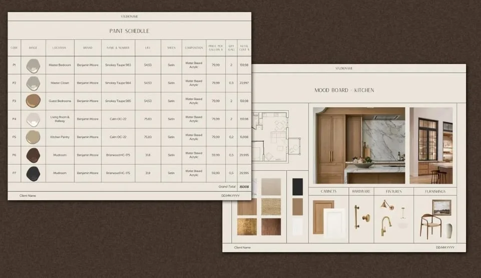 Furniture & Lighting Selection | Finish Schedule | Mood Boards